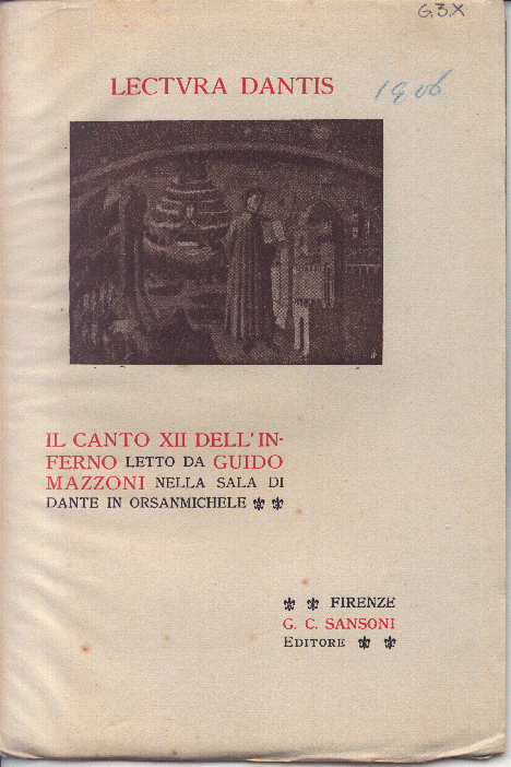 Mazzoni read the canto and his essay on it in the "Sala di Dante" in